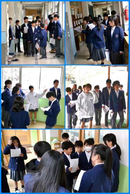 1年生、初日の4時間目は、3年生の案内による校内巡りを行いました。1度では覚えられないかもしれませんが、徐々に覚えていってもらえればと思います。