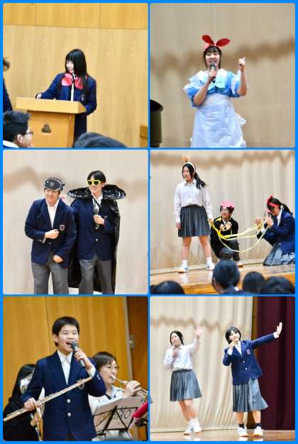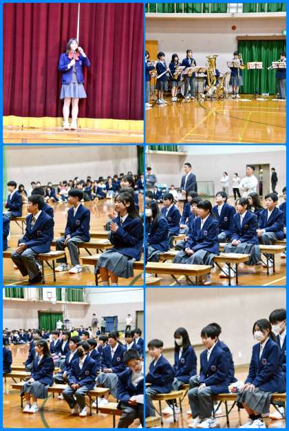本日5〜6限に新入生を迎える会を行いました。吹奏楽部の演奏で入場し、生徒会本部の寸劇、吹奏楽部の演奏をバックにした生徒会本部のダンスといった序盤の構成でした。生徒会の軽快な進行で、場は少しづつ温まっていったものの、序盤はまだ新入生の「安心