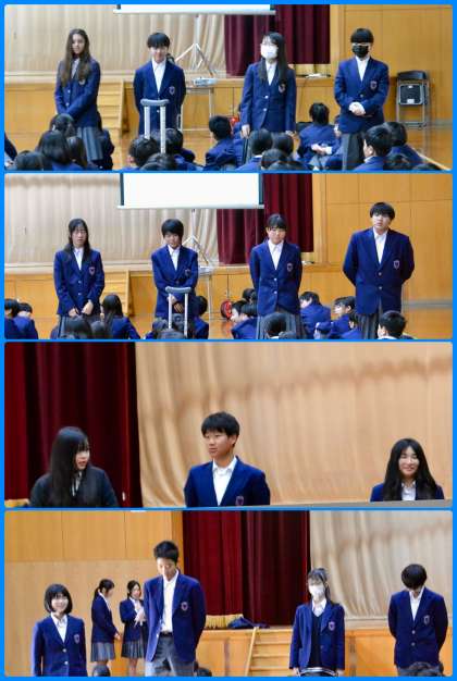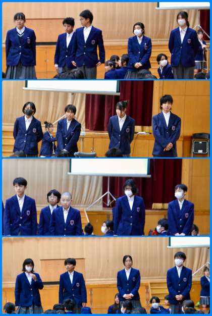 本日の6限、各クラスの代表であるクラス議員や各委員の認証式を行いました。委員会ごとに紹介され、クラス議員は生徒会長から、各委員の人たちは委員長から代表に認証状が手渡されました。意志をもって委員になった人たちばかりです。今後の高野中をどのように染め上げていくのかとても楽しみです。