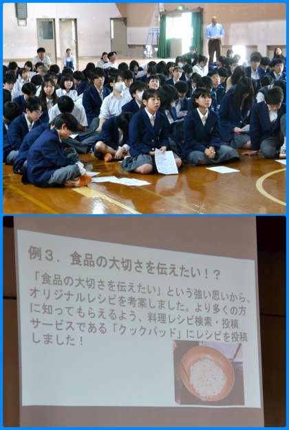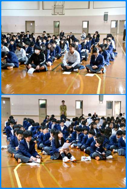 今日の5時間目に、プロジェクトの基本方針やプロジェクトそのものの説明などがされました。テーマは「つながる、切り拓く、みんな幸せ」。これは今年の学校教育目標および目指す学校像から考えられたテーマです。まずは全員自らが課題をたて、教員との対話を経て、自らの課題に協力者を得て、または、他者の課題に協力者として、学年の枠を超えて探究活動を繰り広げていきます。まずは課題設定。この後、教室に戻って、マッピングの手法を使うなどして課題を見つけようと全員が頭を捻っていました。この先の展開が楽しみです。