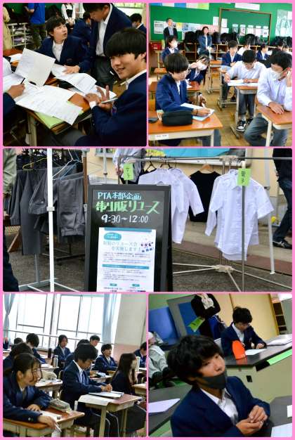 例年より早めの土曜参観です。PTAによる制服リユースの取組も行われました。
