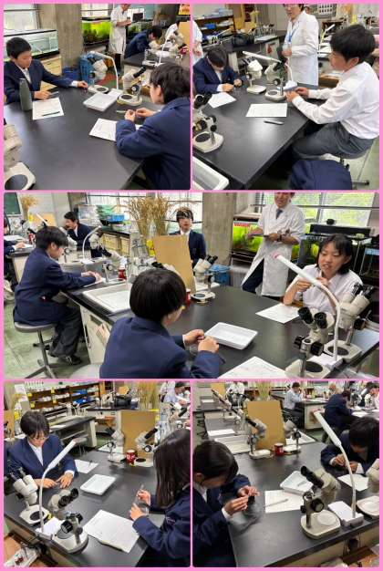 到着後、少し時間があり、実験室の前で短時間展示見学を行ったようです。次に、1の3bの「イネの秘密〜