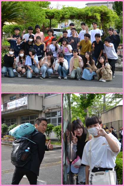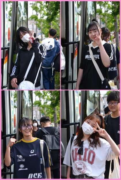 バス2台に分乗して京都駅に向かいます。バスに乗る前に学級写真を撮り、バスに乗り込みました。