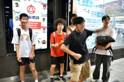 4組は博多駅内を散策するようです。2組、3組は天神散策のため、バスで天神に向かいます。私は2組に同行させていただきます。