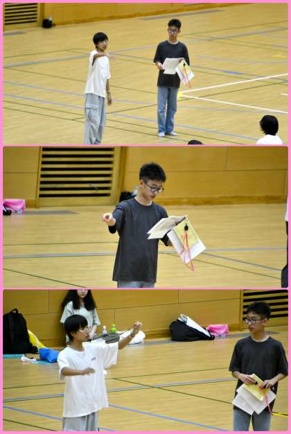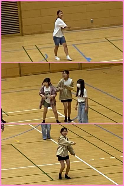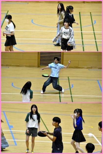 夕食後、バスで5分くらいの嬉野市の体育館に移動し、レクレーションです。ドッジビーと鬼ごっこ…お腹いっぱいで大丈夫かな?