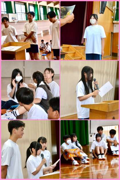 3時間目は3年生が学年集会を行いました。他学年と同様、表彰と先生の話、そしてレクレーションといった構成です。レクレーションは、写真を見るに尻尾取りゲームでしょうか?