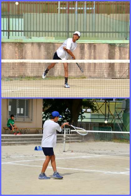 ソフトテニス部では部内リーグ戦が行われ、学年にとらわれない真剣勝負が繰り広げられています。団体戦では、相手校に勝つということ以前に、チーム内の選手の枠を勝ち取る必要があります。このような機会の中で、お互いが切磋琢磨し、勝ち負けだけではないチームとしての高まりに繋がっていくことを期待しています。