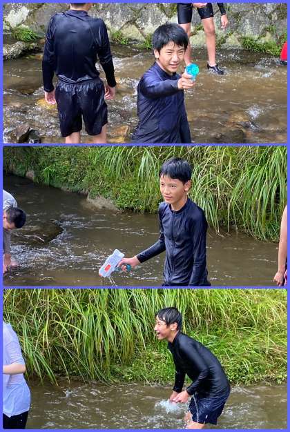 最初の活動は川遊びです。大学生のボランティアも加わりとても楽しそうに過ごしていました。