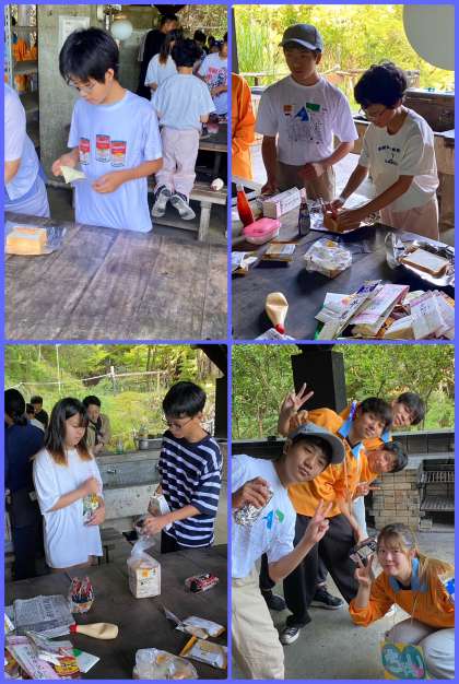 朝食の様子です。パックドックの後には、マシュマロをあぶって食べました。