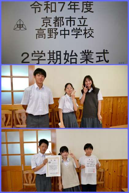 38日間の夏休みを終え、いよいよ2学期が始まりました。1時間目にオンラインで始業式を行い、表彰および夏季大会の頑張りをスライドショーで紹介した後、学期のスタートという節目に、あらためて、なりたい自分に向かって何かに挑戦したり、自分探しをしたりする機会にとの話をしました。任期を2ヶ月後に控えた生徒会からも2学期を前向きに過ごそうとの話がされ、夏休み気分を払拭してくれた気がします。