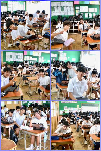 4時間目に各教室を回ってみました。1年生は学活で学級の係の見直し。2年生は道徳で郷土愛をテーマにした資料をもとに意見交流。3年生はGIGA端末がi-pad(セカンドGIGA)に変わったため、その初期設定…が行われていました。