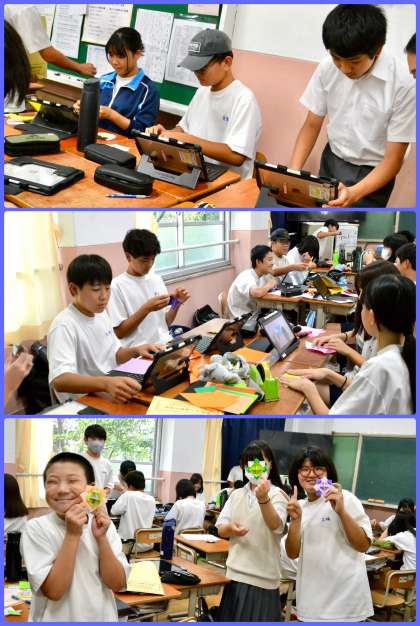 今日の6限、2年生は、来週の人権学習にお招きする留学生に渡すための手作りのプレゼントを作っていました。日本らしいプレゼントをということで、折り紙等を使って、また、インターネットで作り方を確認しながら等、いきいきと活動をしていました。気に入ってもらえるといいですね。