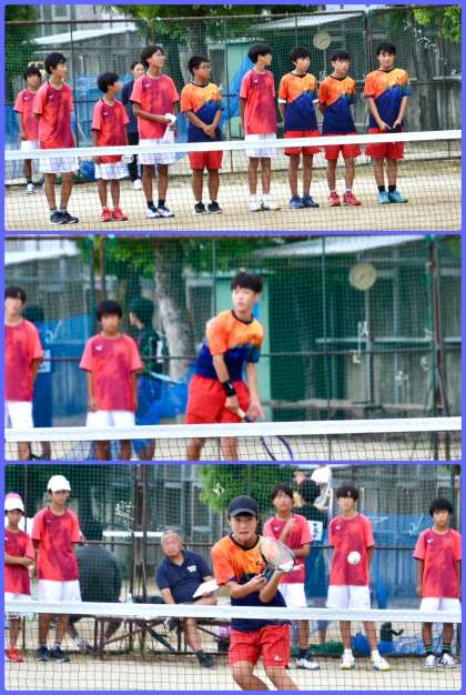 今日、男子ソフトテニス部の秋季大会団体戦予選が行われました。高中は大原小中、朱雀中、洛南中とのブロックに入り、4校で総当たり戦を行いました。初戦が0-2、2戦目・3戦目は共に1-2で敗退となってしまいましたが、2戦目・3戦目は惜敗でしたので、春に期待したいと思います。春の勝利をめざして、練習から声を出し、はつらつとした動きを心がけて活動しましょう。