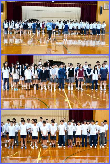 3年生は学年合唱の曲を練習していました。やはり学年全部が揃うと音量も増し、聞き応えがあります。 最後の合唱コンクールの取組、あと2日、噛み締めて取り組んでくださいね。