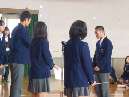 本日6限目に後期生徒会役員及び、学級役員の認証式が行われました。