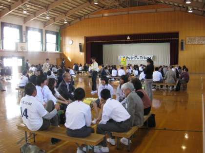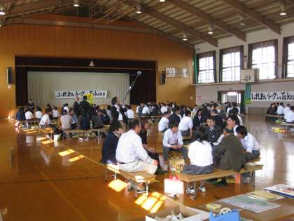 これは高野中学校2年生と約70名の左京地域を中心とした方々の話し合いを通し、異世代間の交流を深め、互いの理解を図ることを目的としています。