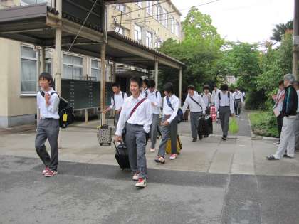 結団式を終えて、バスに乗車です。すがすがしい笑顔が修学旅行への期待を感じさせます。修学旅行を通して、平和や命の尊さ、仲間の大切さなどいろいろなことを学習してきてほしいですね。
