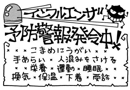 本日の朝の健康観察より、2年4組の生徒が新型インフルエンザに7名感染し、数名の生徒が発熱症状等で欠席しています。また登校している生徒も咳、喉の痛みを訴えている状況から、子どもたちの感染予防のため、4日(水)午後から8日(日)までの期間、学級閉鎖をすることになりました。