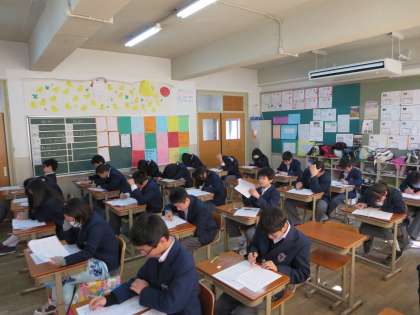 19日から21日までが1,2年生の学年末テストでした。この1年間でずいぶん成長しました。学習面での成果を確認するテストです。どの教室も真剣さでピンと張り詰めた雰囲気でした。