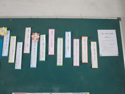 また,中校舎にある配膳室前の掲示板には1年生がつくった「食に関する俳句」が貼ってあります。校長賞や学年主任賞も選ばれています。ご覧ください。