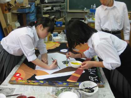 完成後は、生徒大会や体育祭に使用し、学級の団結をはかるために使っていきます。1年生や3年生も今後製作の予定です。