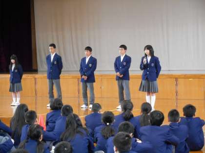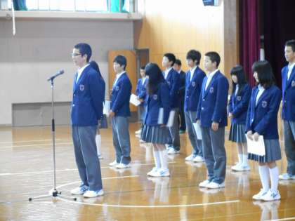 4月15日(水)6限に平成27年度前期専門委員の認証式がありました。生徒会本部役員から各委員会の代表生徒に認証書が手渡され、代表生徒の決意表明の後に、生徒会長より生徒会活動がより活発なものになるようにアピールがありました。今後の生徒会活動に期待しています。