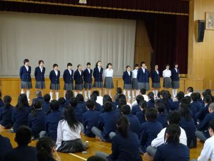 4月28日(火)6限に春体結団式を行いました。各クラブごとに前に整列し、キャプテンが決意をのべ、校長先生から激励のお話がありました。どのクラブもチームワークの良さとやる気が感じられる式となりました。活躍を期待しています。