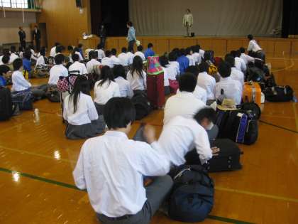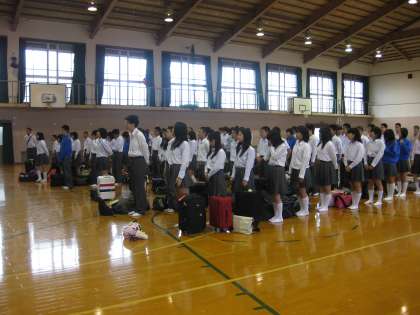 5月11日(火)3年生が2泊3日の修学旅行に出発しました。前日まで体調を崩していた生徒も元気よく早朝の結団式に参加しました。