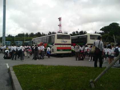 14:00無事那覇空港に到着との連絡が入りました。手荷物を受け取り、読谷村に向かって出発です。