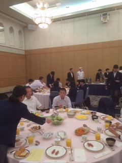 朝食の様子(その2)です。生徒たちは全員元気にホテルを出発し,現在,千葉みなと駅で電車を待っています。8:11発です。