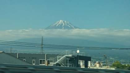 「のぞみ231号」は,14:50ごろ富士山の麓を通過しています。今日の眺めは「最高!」とのことでした。京都駅到着は,16:17の予定です。