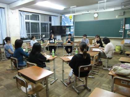 全体会に続いて,各学年2つの合計6グループに分かれて,普段,教員に尋ねたかったこと,同じ学年の保護者に聞きたかったことについて話し合いがされています。あるグループは,スマホの利用についての留意点はどのようなことか,隣の部屋では,受験を控えて,今必要なことは何か,例えば,論文や面接への対応は,どうするのがよいのかなどについて,活発な意見交換がされています。8:30からもう一度全体会場に移動し,各グループでの話し合いの内容についての報告会が行われる予定です。
