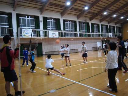 19:00からは,PTA保健委員会と教養委員会の共催で,ソフトバレーボール大会が開催されました。PTA会員(保護者)と,在校生,小学生から高校生のご家族と教職員の約50名が参加されました。4チームがリーグ戦で対戦しました。どのチームもファイトあふれるプレーで,大変盛り上がっていました。