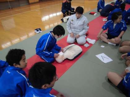 2年生全員が,午後から,救命救急講習を受講しました。普通救命講習とは,応急手当のうち,生命を救うために最低限必要な,AEDの使用方法を含めた成人に対する心肺蘇生法(胸骨圧迫と人工呼吸)などを学ぶ講習です。今年で2年目になります。左京消防署の方にお世話になりました。生徒たちはみな真剣に取り組んでいました。