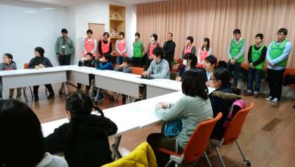午後から科学部は,京都市動物園に出かけ,「第1回 守れ!イチモンジタナゴプロジェクト」に参加しました。このプロジェクトの目的は,自然環境を守ろうという気持ちを高め,身近な自然の生態系を知るとともに,これからも自然環境に関心を持ち続ける仲間を増やすことにあります。まず,最初はレクチャールームに集まり,大人から小学生までが,自分が今回このプロジェクトに参加した理由や,魚とのかかわりを話しながら,和やかな雰囲気で自己紹介が進みました。高野中生も自分のことを,しっかりと参加者に伝えていました。部員の成長を感じます。写真は,自己紹介の際の様子です。