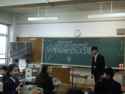 教室では,担任から,自己紹介,教科書配布,配布物,担任抱負について話がありました。教室の様子を紹介します。