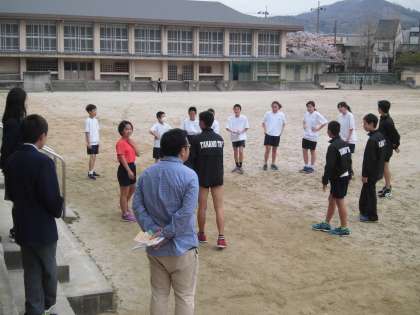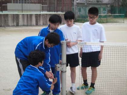 10日(月)から14日(金)までが,1年生の部活動見学・体験期間です。見学や体験に訪れた1年生は,先輩の活動を熱心に見学したり,実際に活動を体験したりしています。写真は,体験,見学中の様子,ネットの設置の仕方について先輩から説明を受けている様子です。
