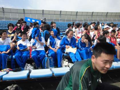 少し早く到着した生徒たちは,スタンド席で集合整列までの時間をリラックスして過ごしました。