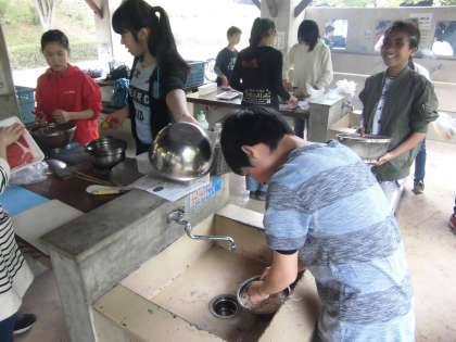 調理中の様子です。すごく手際よく調理をしている生徒がいます。
