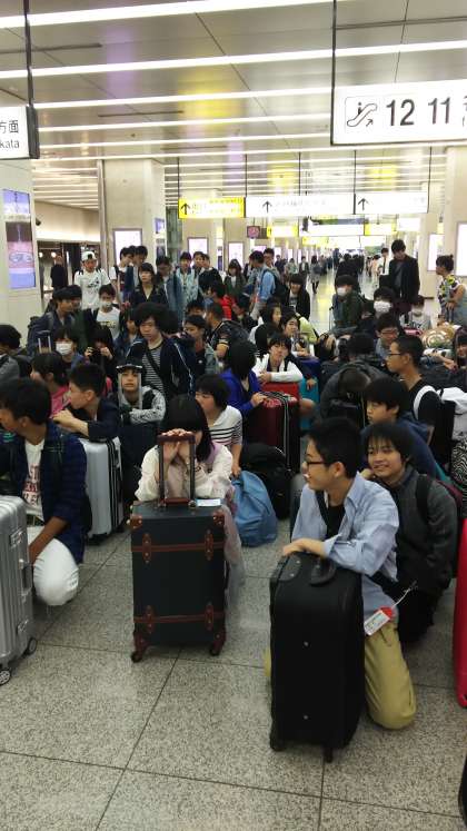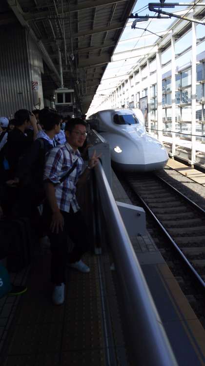 一行を乗せた新幹線は,8:56に京都駅を出発しています。写真は,乗車前の様子です。