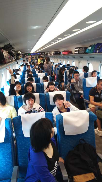 新幹線車内の様子です。生徒たちは,11:00から昼食をとり,11:40に東京駅に到着の予定です。