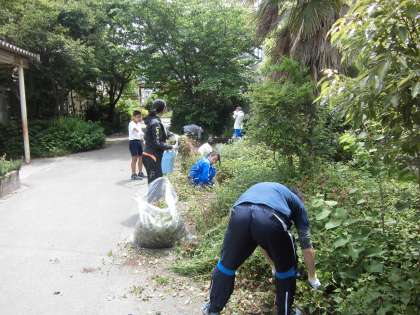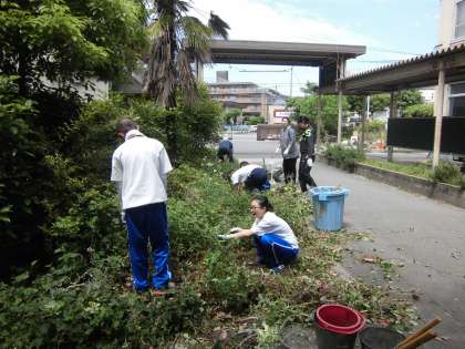 2年生は,チャレンジ体験の3日目です。今日は,事業所が定休日の4名の生徒が登校し,校内環境整備活動を行っています。4名の教職員と学生ボランティア1名も作業を行っています。