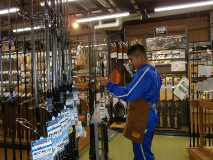 チャレンジ体験の様子の続きです。幼稚園と釣り具店で体験活動を行っている生徒の様子です。