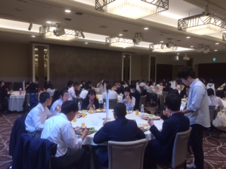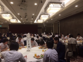 朝食は,学級ごとにテーブルにつき,各自が気に入った料理を選びます。いわゆるバイキング形式となっています。飲み物はオレンジジュースが人気があるようです。
