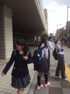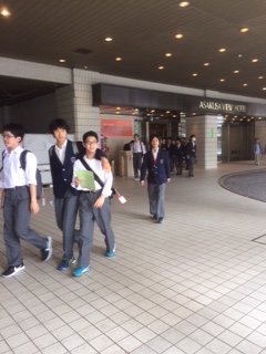 都内班別研修が始まります。各クラス5つのグループに分かれ,都内をめぐります。出発前に担任から,貴重品の返却,行程表,地図,携帯電話(学校からの支給品),デジカメ1台(記録用),一日乗車券を受け取りいよいよ出発です。
