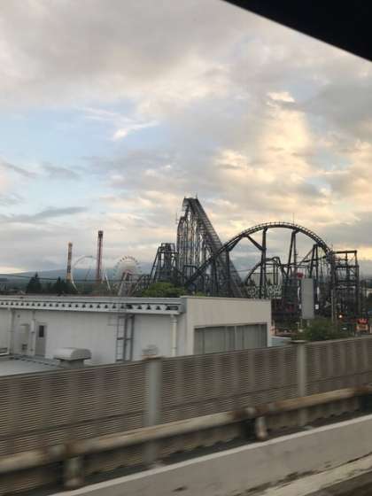 移動中のバス車中では,レクリエーションを楽しみました。途中,富士急ハイランドの横を通過しました。そろそろ,ホテルに到着です。