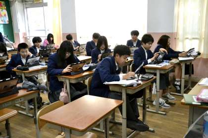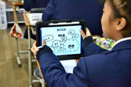 2-3の理科では雲についての調べ学習のまとめがされていました。既に終わった人の中にはテスト勉強する人もいました。テストが近いので集中して学習をしています。