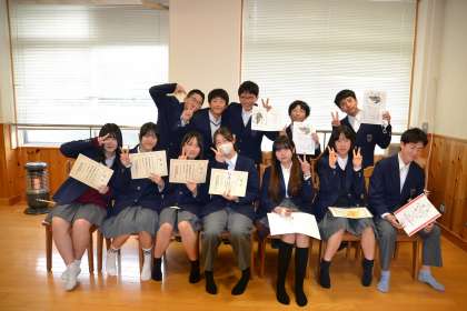 今回の終業式もリモートで実施しました。いきいき交流ルームに、生徒会本部の皆さんと伝達表彰を受ける皆さんに集まってもらい、表彰、校長の話、生徒会からの緊急報告と会長からの2025年を締めくくる話といった順で行いました。
