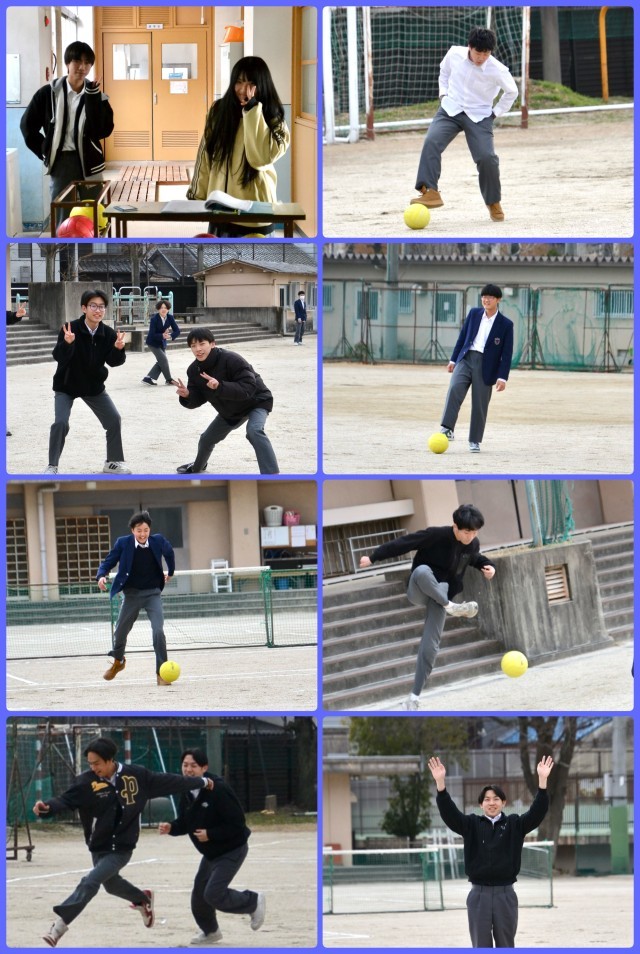 1・2年生がテスト期間中だったため、この3日間、3年生だけが午後の授業を行っていました。昼休みがあるのも3年生のみで、グランドで遊んでいるのは2グループのみ。バレーボール組は人が増えるたびに撮影のリクエストがあり、似たような写真になりますが、3枚掲載しました。サッカーはどのような規則で行われているのかがわかりませんでしたが、ゴールにボールをけり込むのではない形でプレイが進んでいました。結構、真剣にプレイしていたことに興味津々です。その2グループがボールで遊べるのも体育委員のボール当番がいてくれるおかげですね。
