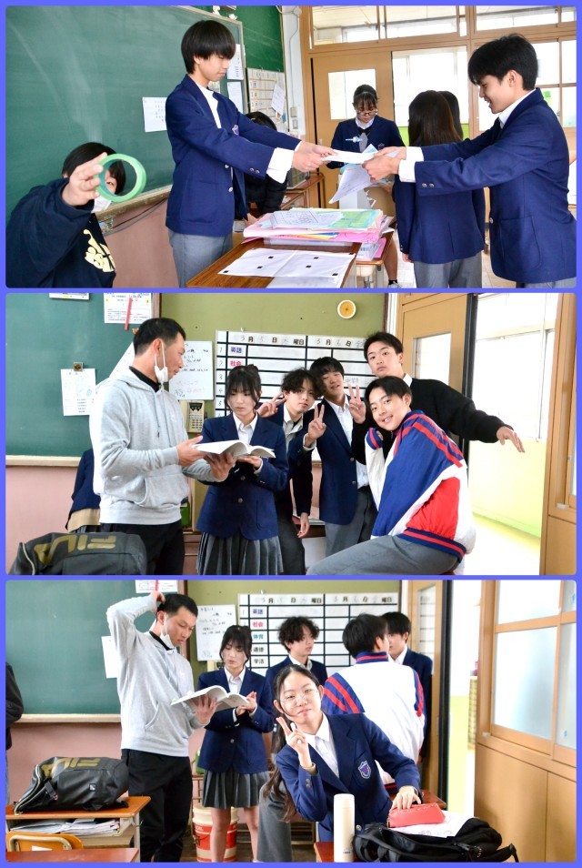 今日は公立高校の中期選抜の日です。中期を受検しない生徒は午前中のみ登校しています。仲間の健闘を祈りつつ、清掃活動をしたり、各種プリント類を仕分したり、教室の掲示板を書き変えたりしてくれています。入試の方は、今、社会を終えて休憩時間の頃です。あと少しで解放されますので、なんとか頑張りぬいてほしいです。